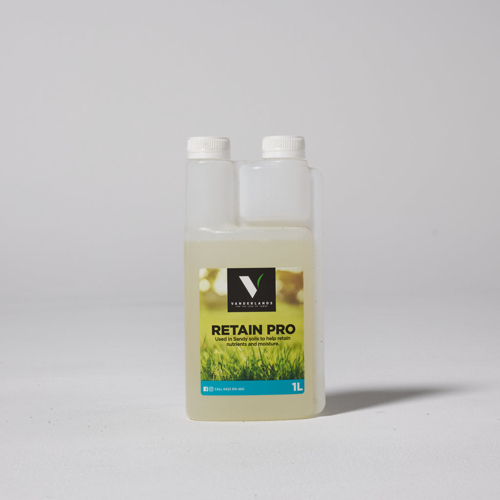 Retain Pro is a leading-edge wetting agent designed to break the surface tension of water and evenly distribute water throughout the rootzone. Retain Pro interacts with soil molecules to reduce leaching and holds water in the rootzone.